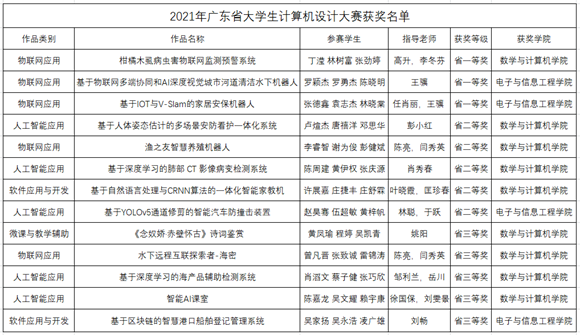 近日,由广东省教育厅主办的“2021年广东省大学生计算机设计大赛”落下帷幕。今年的比赛有来自广东省80多所本科院校共1329件作品参加。经过初评和复审两个环节,共评选出580件作品晋级省决赛。我校学子在比赛中不畏强手,奋力拼搏,最终获得广东省一等奖3项、二等奖5项、三等奖5项的好成绩。其中来自我院团队的《柑橘木虱病虫害物联网监测预警系统》和来自电子信息工程小九直播