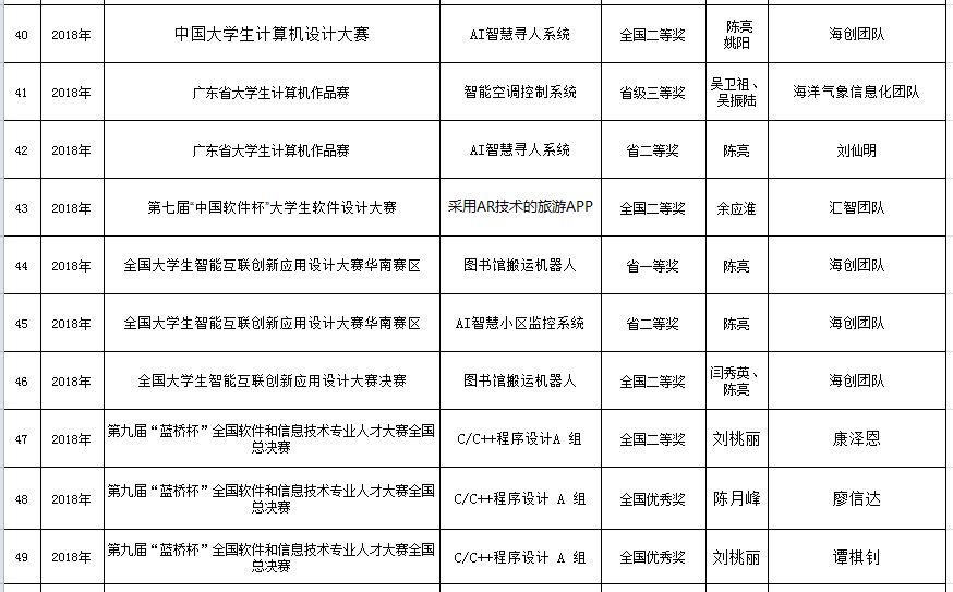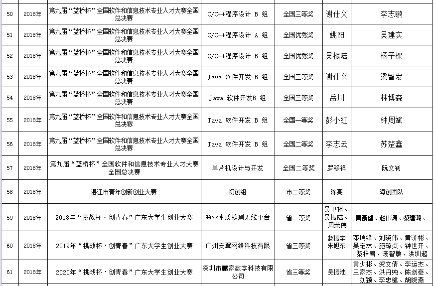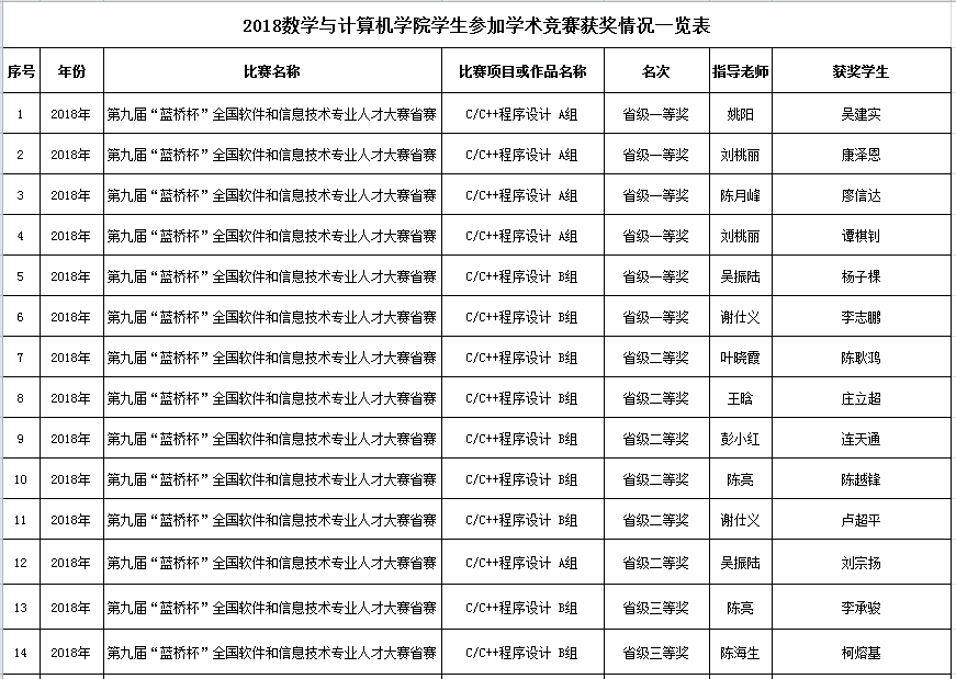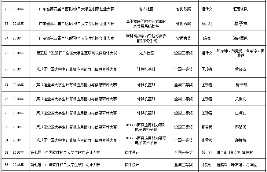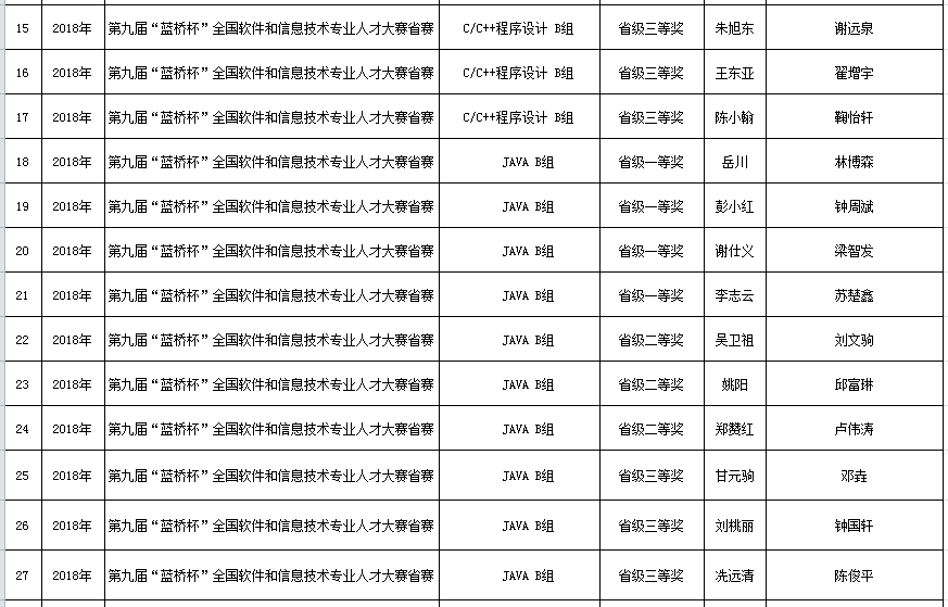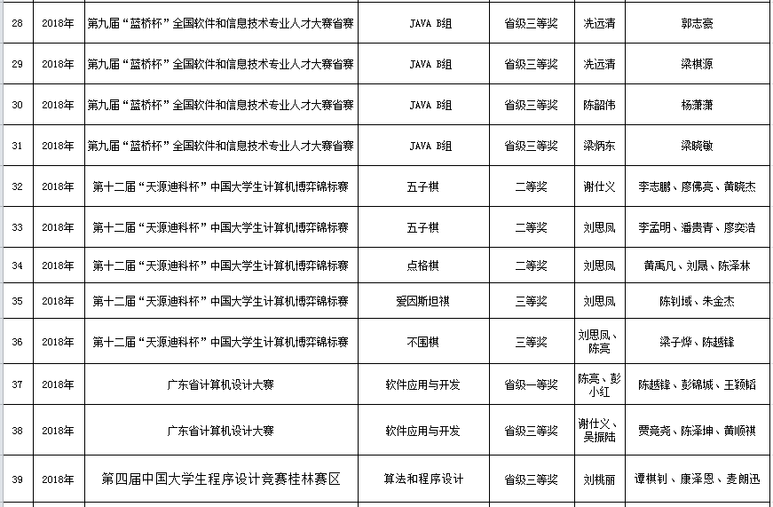 小九直播 学生2018年参赛获奖情况一览表