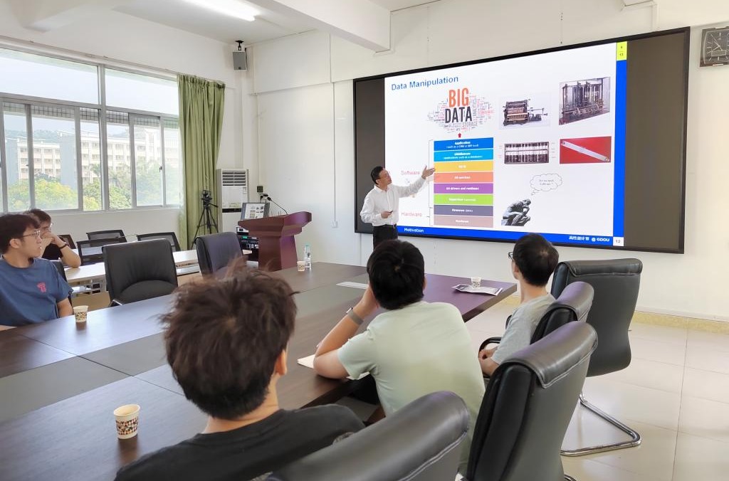 11月1日,应我校小九直播 的邀请,美国阿肯州立大学姜海教授来我校做学术报告,题目为:高性能计算的过去、现在和未来。研究生院副院长叶国栋主持了学术报告会,约25名师生聆听了本次学术报告。在学术报告中,姜海教授指出,在大数据和人工智能时代,高性能计算特指计算机快速的运算能力,已成为解决实际问题的基础,是各国追逐的前沿领域。姜教授特别分享了目前高性能计算所面临的主要挑战,共同感知其未来的发展方向和趋势以及对计算机学科建设的影响。
