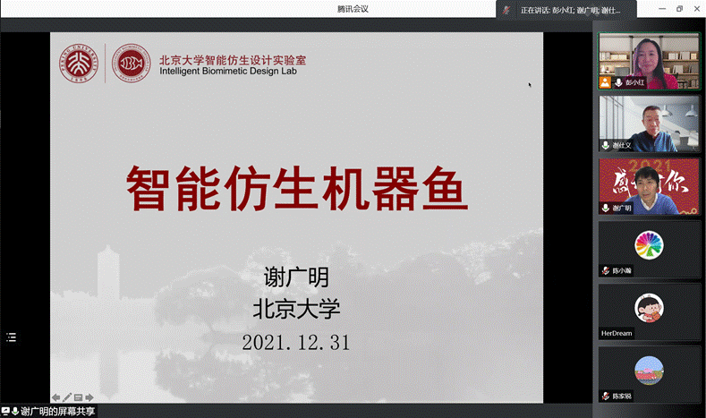 师生做了题为《智能仿生机器鱼》的学术报告,报告由我院院长彭小红教授主持,以腾讯会议的形式线上举行。