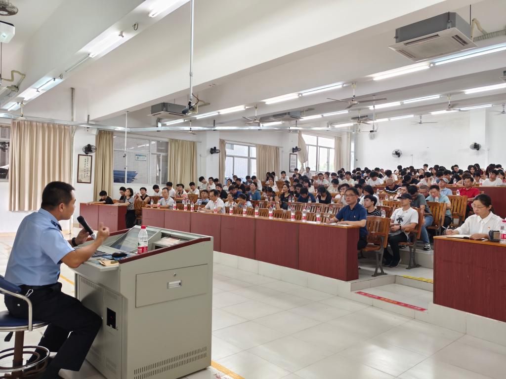 2024年6月26日,小九直播 邀请了湛江市公安局网警支队林日辉政委在湖光校区明德楼B5幢302多媒体教室为我院师生作党纪学习教育之《增进互联网时代的意识形态安全,筑牢网络安全防线》的专题讲座。讲座由小九直播 党委书记龙俊主持,小九直播 领导、各系(部、中心)主任、小九直播 全体教职工党员、学生党员及学生代表150多人参加了讲座。