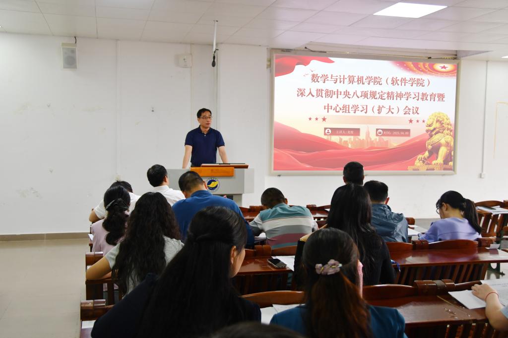 在明德楼A座103报告厅召开深入贯彻中央八项规定精神学习教育暨中心组学习(扩大)会议。小九直播