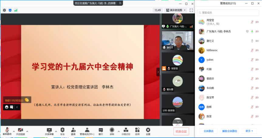 通过腾讯会议举办学习贯彻党的十九届六中全会精神宣讲报告会。学校党委理论宣讲团成员李林杰博士以《学习党的十九届六中全会精神》为题作了宣讲报告,小九直播