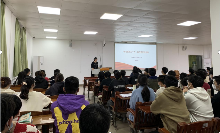 党委副书记周荣伟在明德楼103室为学生解读党的二十大报告,全院学生党员和入党积极分子共160多人参加。