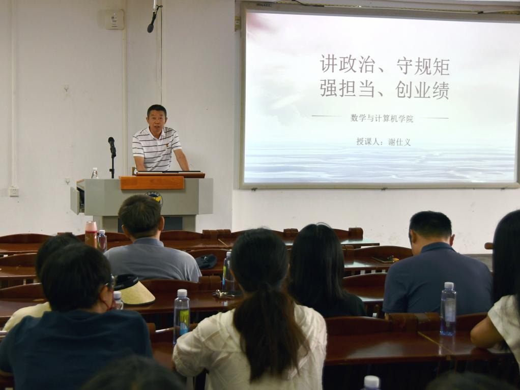 党委书记谢仕义作动员讲话并作专题辅导报告,院长彭小红主持会议。
