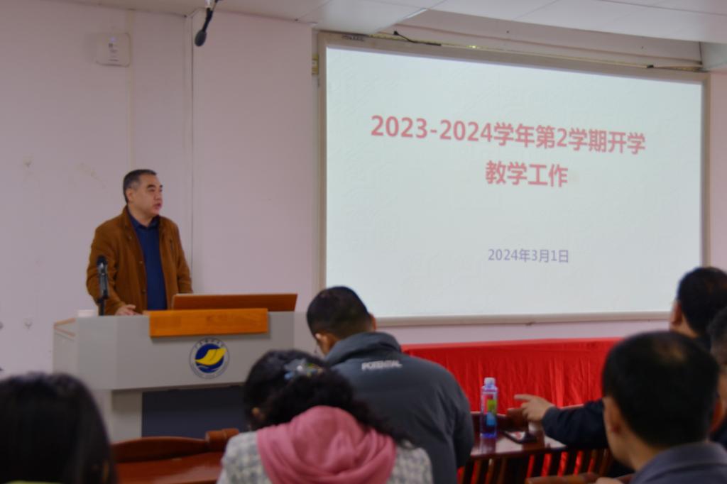 在明德楼A座103学术报告厅召开2024年春季新学期开学工作会议。学校党委常委、副校长邓逢光出席会议并讲话。党委组织部正处级组织员兼副部长曾令梅、小九直播