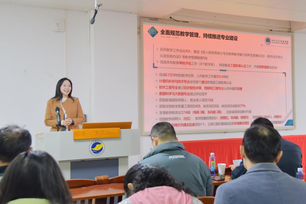 在完善规章制度、优化师资队伍、规范教学管理、加强学科建设、坚持以德树人推动学生工作以及在学科竞赛、工会活动等各方面所取得的优异成绩。然后彭小红对新学期小九直播