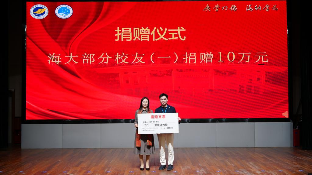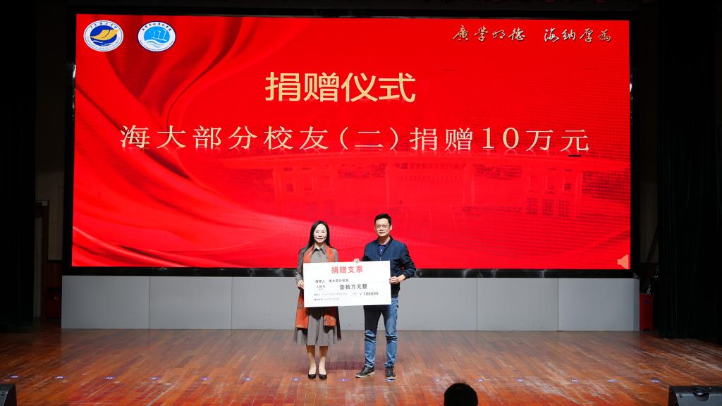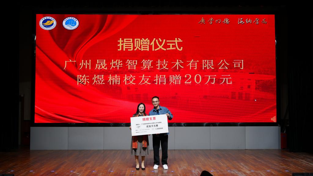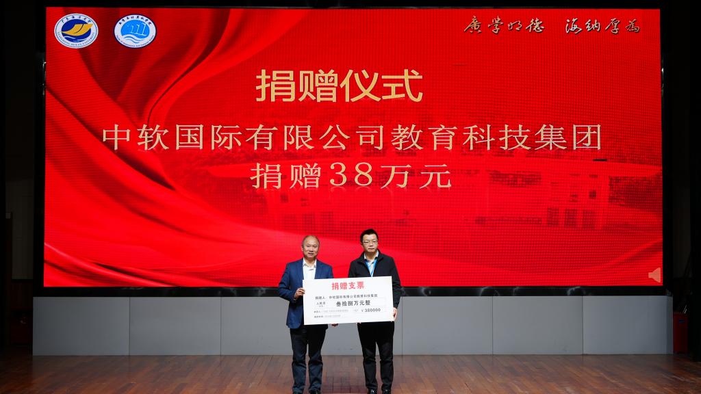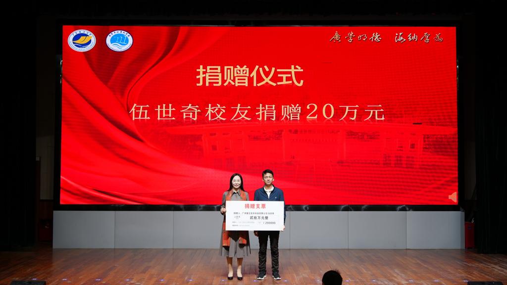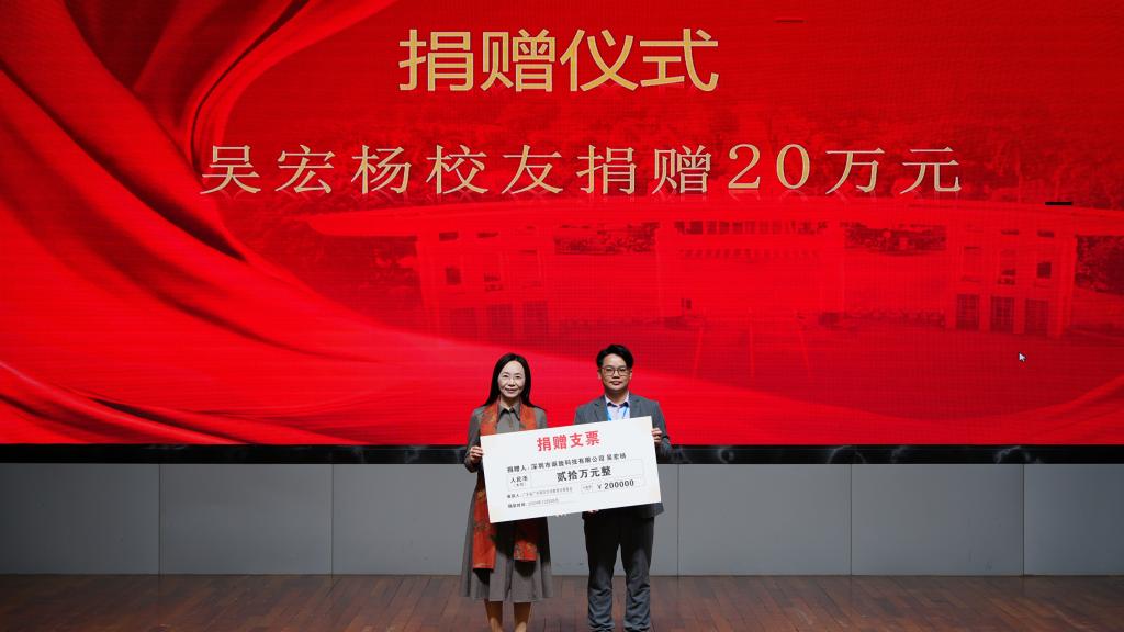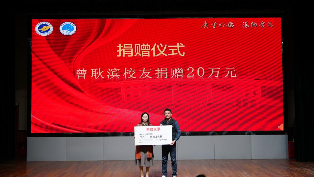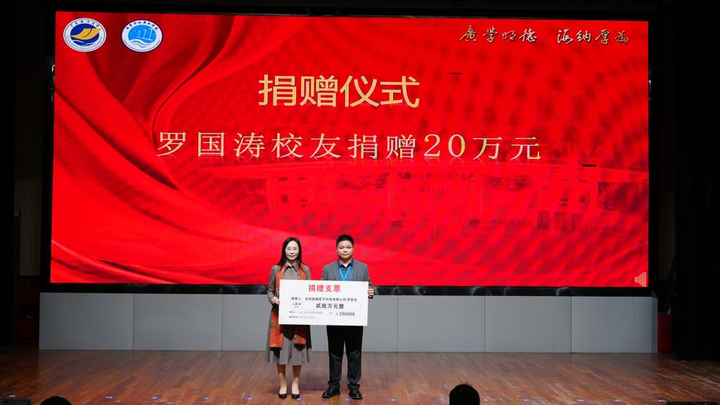 校友会捐赠仪式。邓逢光副校长接受中软国际有限公司教育科技集团捐赠38万元,彭小红会长接受吴宏杨、罗国涛、伍世奇、曾耿滨、陈煜楠等校友代表捐赠共计120万元。合计总捐款达158万元。