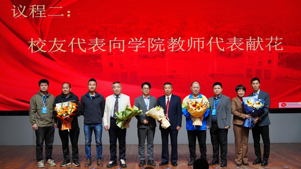 教师代表献上鲜花,以表达莘莘学子对授业老师多年来辛勤培养的感激之情。