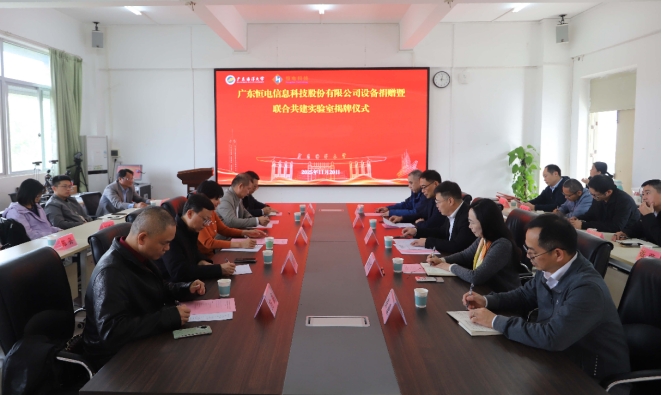 在明德楼A座405会议室举行广东恒电信息科技股份有限公司设备捐赠暨联合共建实验室揭牌仪式。本次活动为小九直播