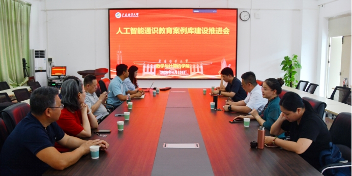 在明德楼A座405会议室召开人工智能通识教育案例库建设推进会。副院长余应淮主持会议,计算机公共教学部全体教师及青软创新科技集团广东办事处总经理刘小明、运营负责人陈璐共同参会。