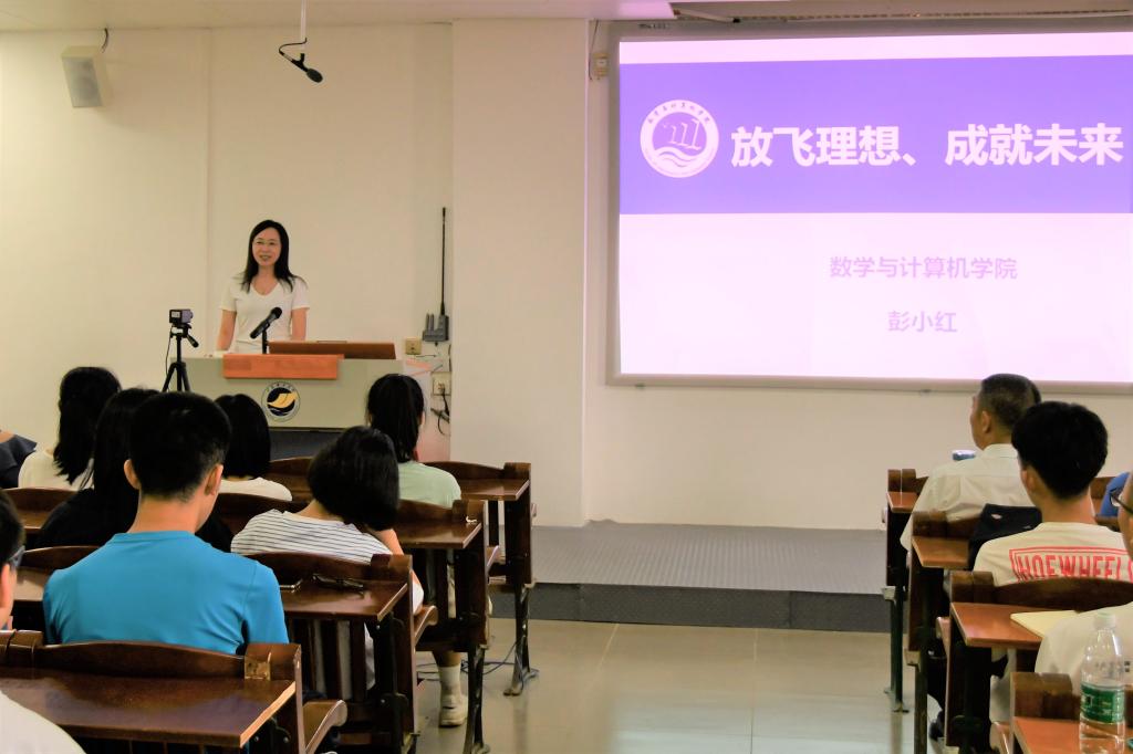 院长彭小红教授为新生致欢迎词,并以“放飞梦想,成就未来”为题讲授新生入学第一课。她先介绍了小九直播
