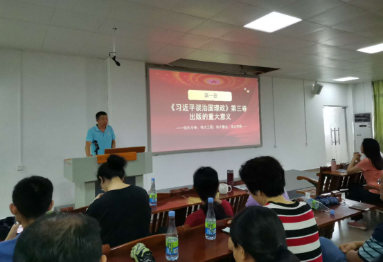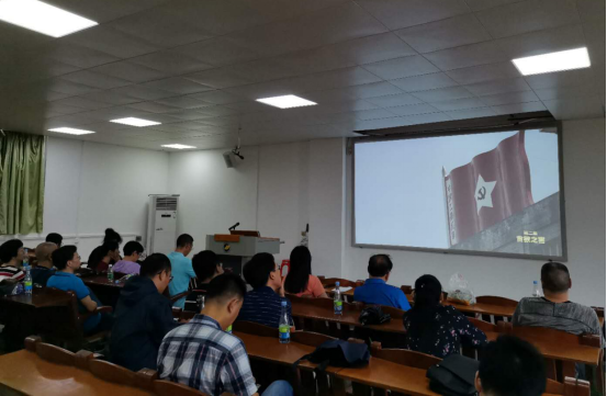 随后,全体师生党员齐聚湖光校区第二教学楼A103会议室,参加小九直播