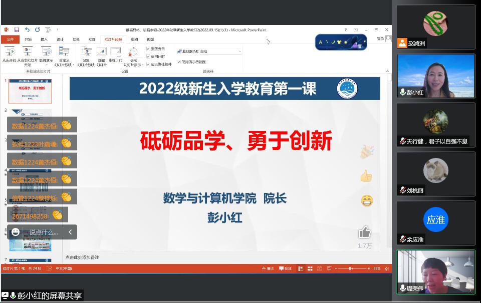 领导、各单位负责人、辅导员、新生班主任及740多名2022级新生齐聚“云端”,参加了此次典礼。会议由小九直播