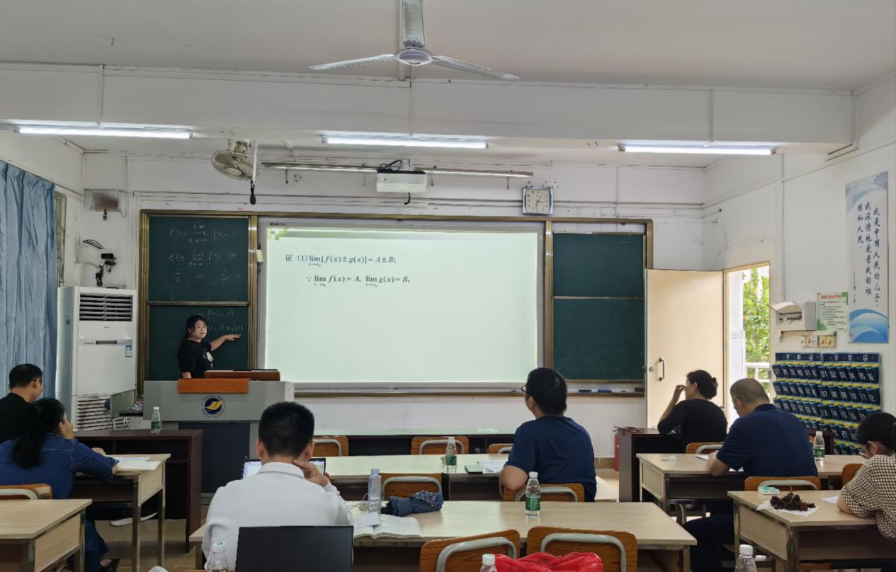 在授课环节,刘付林娟、邓杨芳、林日光、李玉老师分别以《线性代数》——“矩阵的运算”、《经济数学》——“函数极限四则运算”、《数学分析3》——“复合函数的求导法则”、《线性代数》——“矩阵乘法”为题,展开说课和课堂教学。参赛教师精心准备,使用多媒体设备进行试讲,进行了多元化并且层次合理的设计,运用讲授法、讨论法等授课方法,将思政元素有机融入到对应知识点中,展现了认真严谨的教学态度和创新与传统相结合的教学方法。评委们对参赛教师的课堂表现做了客观、中肯的点评,从课程内容编排结构、仪表教态、语言表达、板书设计、教学互动等方面提出了多项建议。