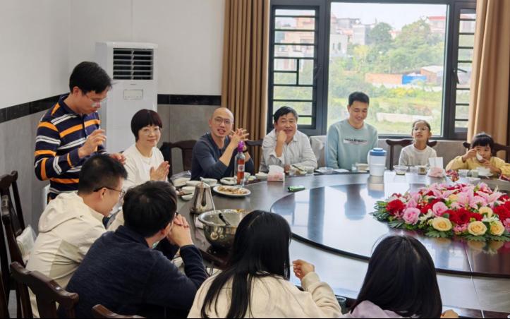 午餐时分,大家齐聚廉江市区特色餐厅,品尝融合红江橙、本地海味等食材的风味佳肴。餐桌上,老师们畅谈过往一年的工作心得与生活趣事,分享教学科研中的收获与感悟,共话新年期许,温情暖意萦绕席间,进一步拉近了彼此的距离。餐后的趣味互动环节精彩纷呈,特别是在“新年祈福盲盒”环节,大家写下新年愿望与祝福,随机抽取、彼此分享,传递着温暖与好运,欢乐祥和的氛围推向高潮。